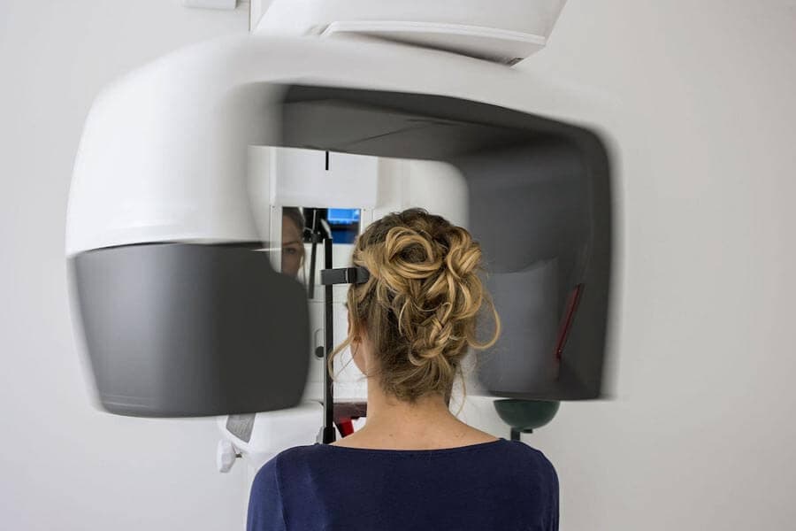 Die Digitale Volumentomographie (DVT) ist eine hochmoderne Röntgentechnologie in unserer Zahnarztpraxis in Kiel. Sie ermöglicht es, detaillierte und präzise 3D-Bilder von Zähnen und dem Kiefer zu erstellen. Unsere Zahnärzte können somit tieferliegende Probleme wie Wurzelkanalverletzungen, Zysten und andere Pathologien frühzeitig erkennen und gezielt behandeln, sowie die Planung von Implantaten oder anderen chirurgischen Eingriffen. Die Bilder sind sofort verfügbar und ermöglichen eine schnelle und effektive Diagnose und Behandlung. Es ist auch sehr sicher für den Patienten, da die Strahlenbelastung sehr gering ist.